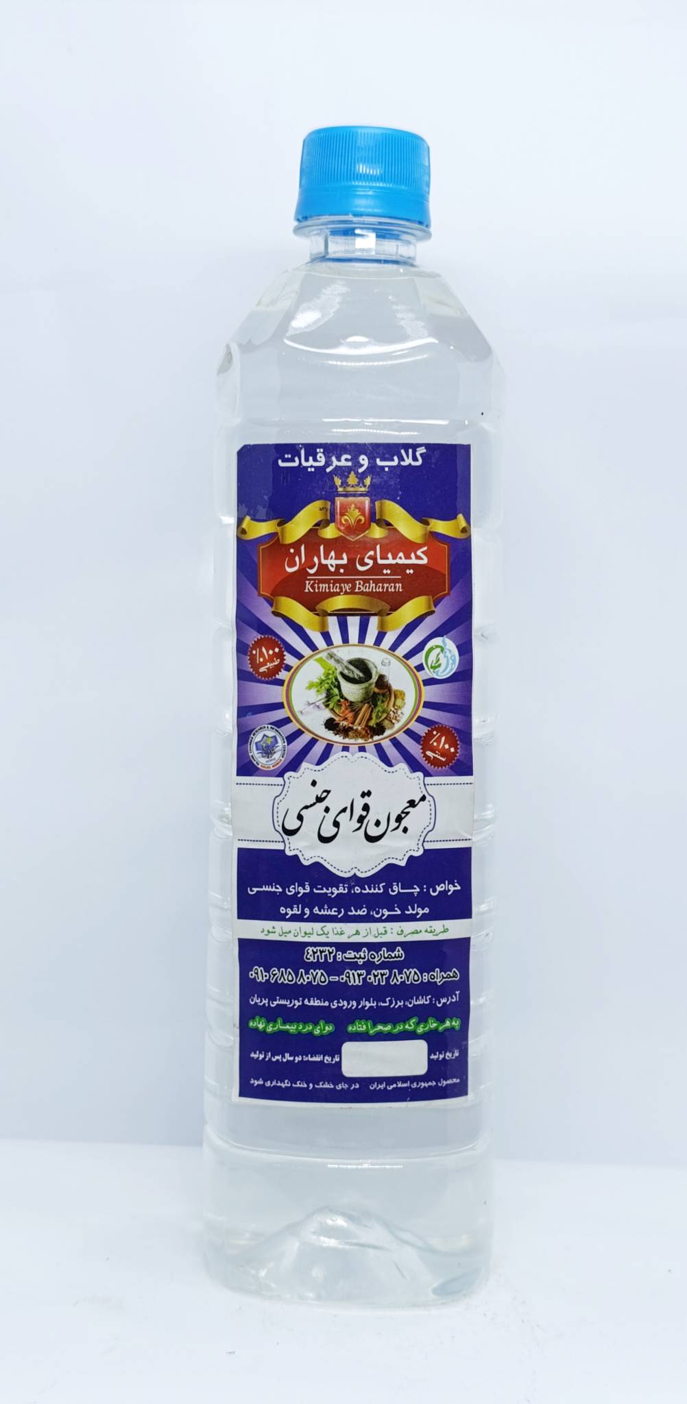 این معجون در تقویت قوای جنسی،رفع اختلالات جنسی،تقویت قوای بدنی و ... بسیار موثر می باشد.این معجون از ترکیب هشت عرق گیاهی شامل گلاب، بابونه،بادرنجبویه،بهارنارنج،اسطوخودوس،سنبل الطیب و... تشکیل شده است.